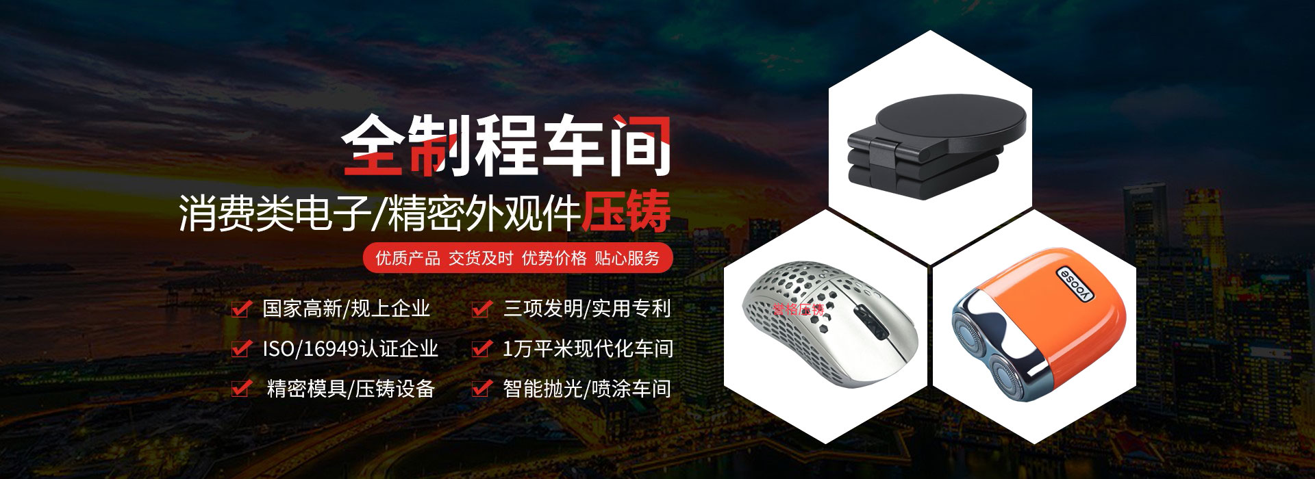 譽格精密技術有限公司,公司地處經濟高速發展的深圳,創始人96年開始進入壓鑄行業,基于壓鑄行業24多年的技術沉淀,于07年借助工業快速發展和消費類產品壓鑄件的需求而創立,經歷了10多年的潛心經營和發展;隨著規模的不斷擴大,從模具的生產制造和壓鑄生產加工不斷引進新的設備和技術,緊跟行業技術迭代的前沿,在眾多客戶和同行行業中得到了廣泛認可,沉淀了品牌知名度。